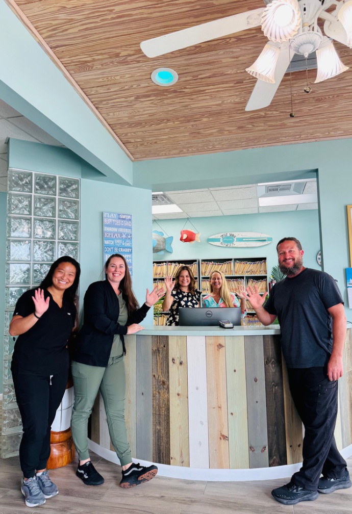 From Left: Dental Assistant Halle, Dental Hygienist Alissa, Scheduling Coordinator/Receptionist Jeannine, Office Manager Ruby, Dr. Manchester